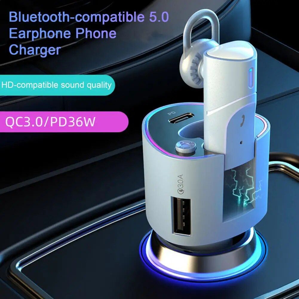 2-in-1 Bluetooth Earphone & Fast Car Charger