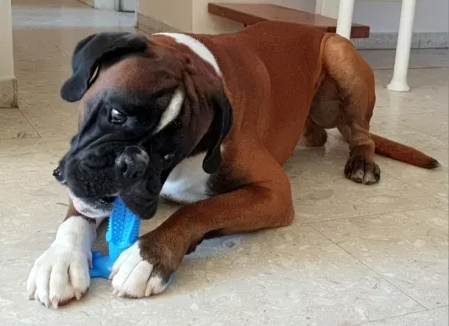 The design of this toothbrush is ingenious. It’s not just a toy; it actually cleans my pup’s teeth while he chews on it.