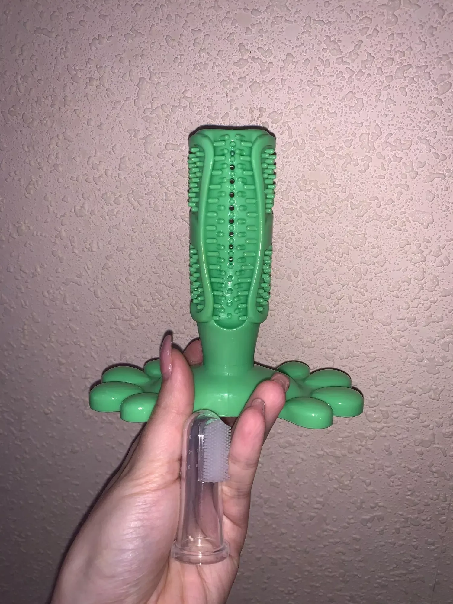 My dog took to this toothbrush right away. It’s durable, non-toxic, and keeps his teeth sparkling clean.