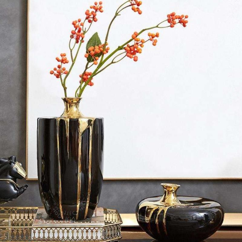 Elevate your home’s ambiance with our Modern Luxury Ceramic Vase, a perfect blend of sophistication and style. Designed to enhance any living space, this stunning piece is more than just a vase; it’s a statement of elegance. Its sleek black and gold design adds a touch of luxury to your living room, making it an ideal choice for those who appreciate the finer things in life.