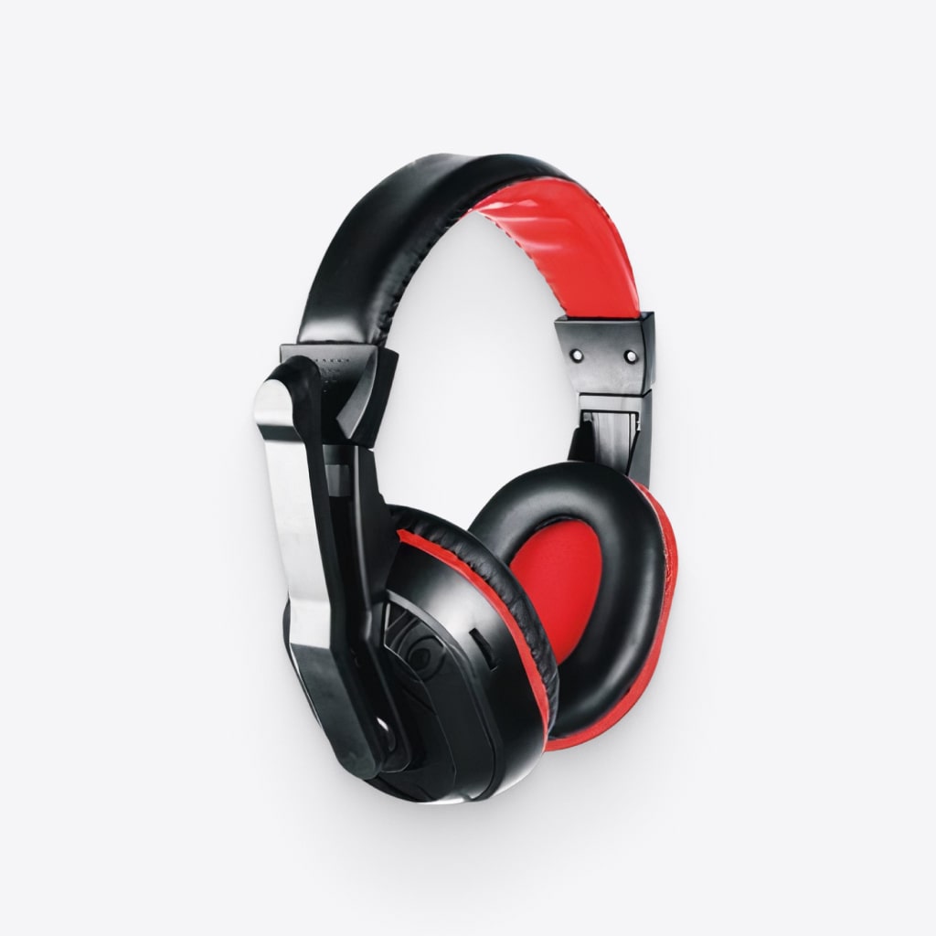 A red & black headset