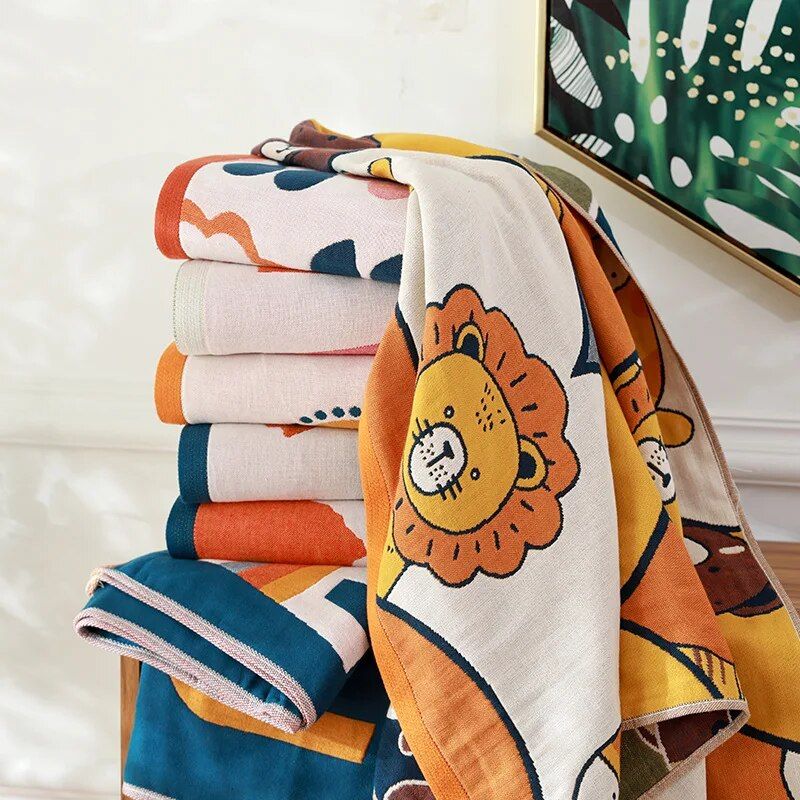 Our bath towels are not just about comfort; they’re also a statement of style. Available in 15 vibrant colors, there’s a shade to match every bathroom decor. Each towel features a charming cartoon pattern, adding a touch of whimsy and fun to your bathing routine. The towels are generously sized at 70x140cm, ensuring full coverage and easy wrapping.