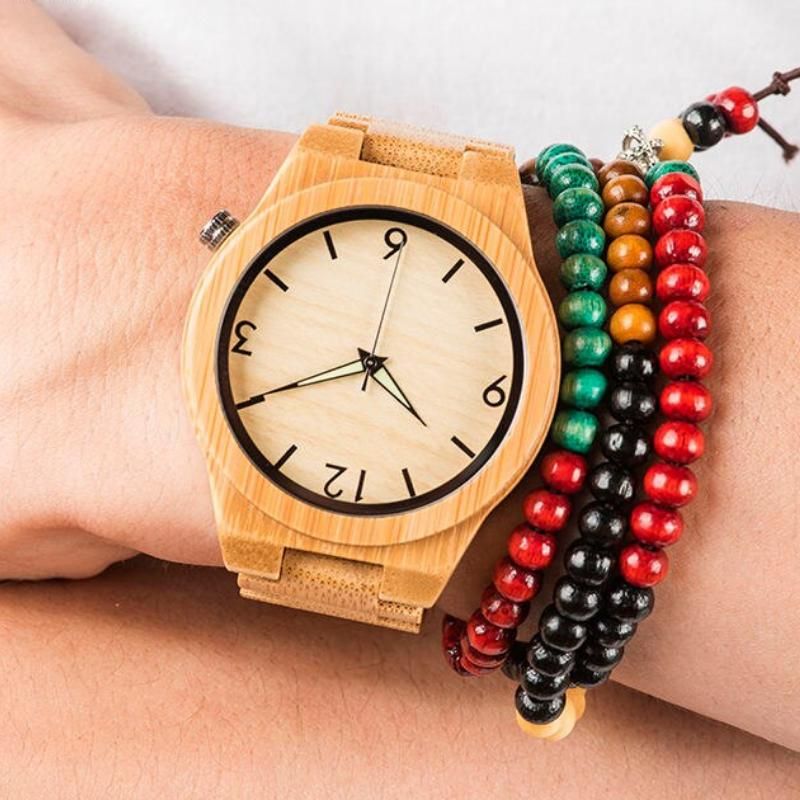 • Natural Bamboo Material: Handcrafted from natural bamboo, this watch is lightweight, durable, and eco-friendly.