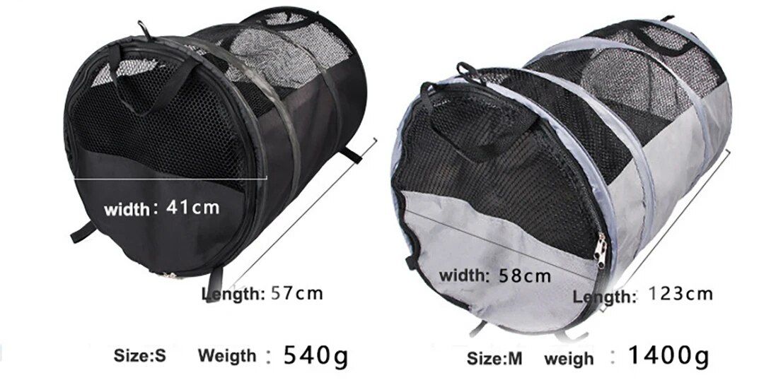 Our Pet Tunnel stands out with its mesh ventilation on both front and back panels, ensuring your pet stays cool and comfortable no matter the weather. The easy-open/close zipper door makes access a breeze while providing a secure enclosure. Plus, it’s customizable inside with space for your pet’s favorite blankets or beds. It’s not just a crate; it’s a mobile pet home!