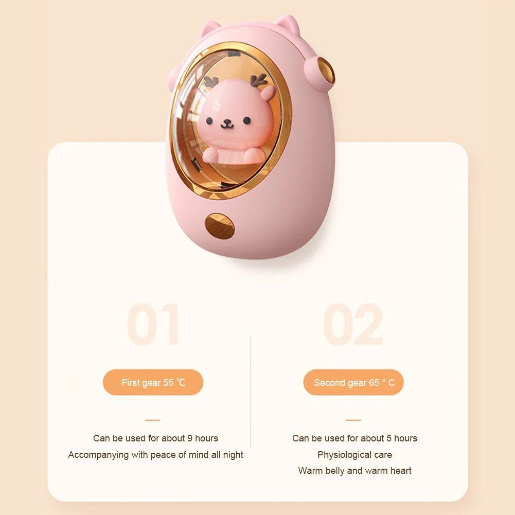 Our mini hand warmer boasts an adorable cartoon deer design, making it a delightful accessory that adds a touch of whimsy to your daily routine. Not just a pretty face, it heats up in a mere three seconds, providing you with instant warmth and relief from the cold.