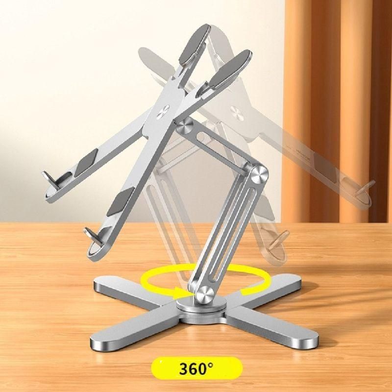 The heart of this laptop holder lies in its innovative design. Crafted from premium aluminum alloy, it boasts a sturdy yet lightweight build, perfect for the on-the-go lifestyle. The stand’s ability to rotate 360 degrees allows for effortless adjustment to your preferred viewing angle. Accommodating laptops ranging from 11 to 16 inches, it caters to a wide array of devices, ensuring a perfect fit for your laptop.