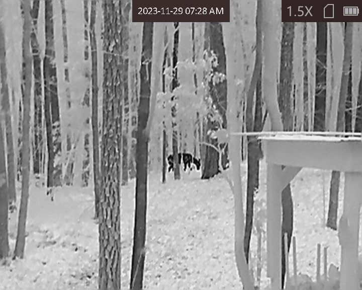 The clarity this device offers is phenomenal, allowing me to see clear, detailed images far beyond what I expected. The device’s fast frame rate means that moving objects are captured seamlessly, a feature that proved invaluable when tracking faster animals or assessing the situation quickly. The digital zoom allows me to focus in on specific areas without losing image quality, which has been particularly useful for identifying animals or objects at a distance. Moreover, the ease of targeting with the laser indication and Hotspot Tracking has made it simple to keep track of anything unusual.