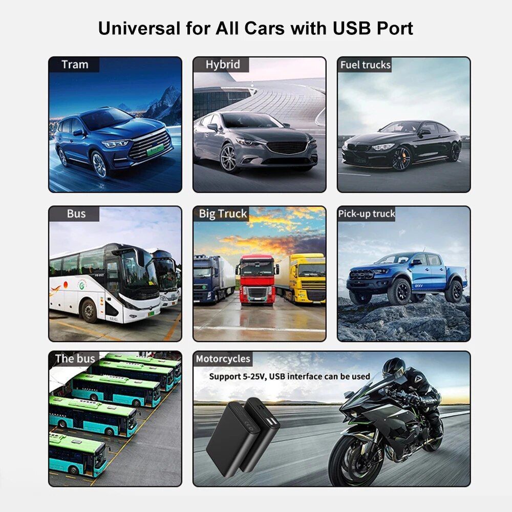 • Universal Compatibility: Perfect for cars, pickup trucks, buses – any vehicle with a USB port.