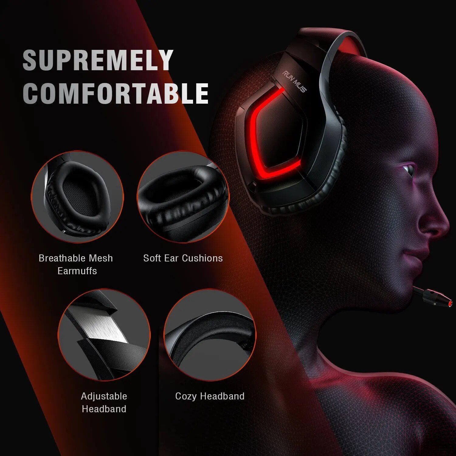 • Comfort Beyond Comparison: Soft memory foam ear cushions coupled with a breathable mesh earmuff design ensures extended gaming sessions remain comfortable.